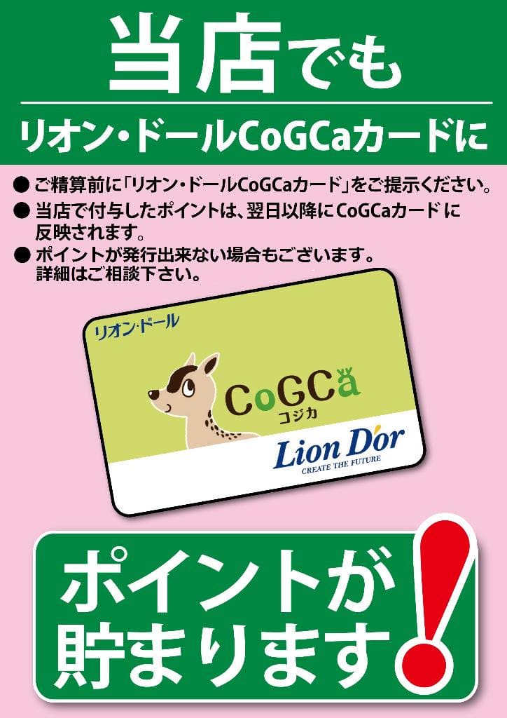リオンドールの「コジカカード」にポイントが貯まります。ポイント付与の対象となるのは下記の通りです。